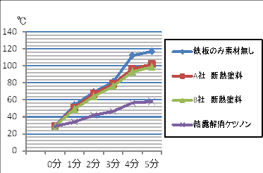 | シリカバルーンの中空構造が熱伝導を抑え、驚くべき遮熱性・断熱性実験グラフ |